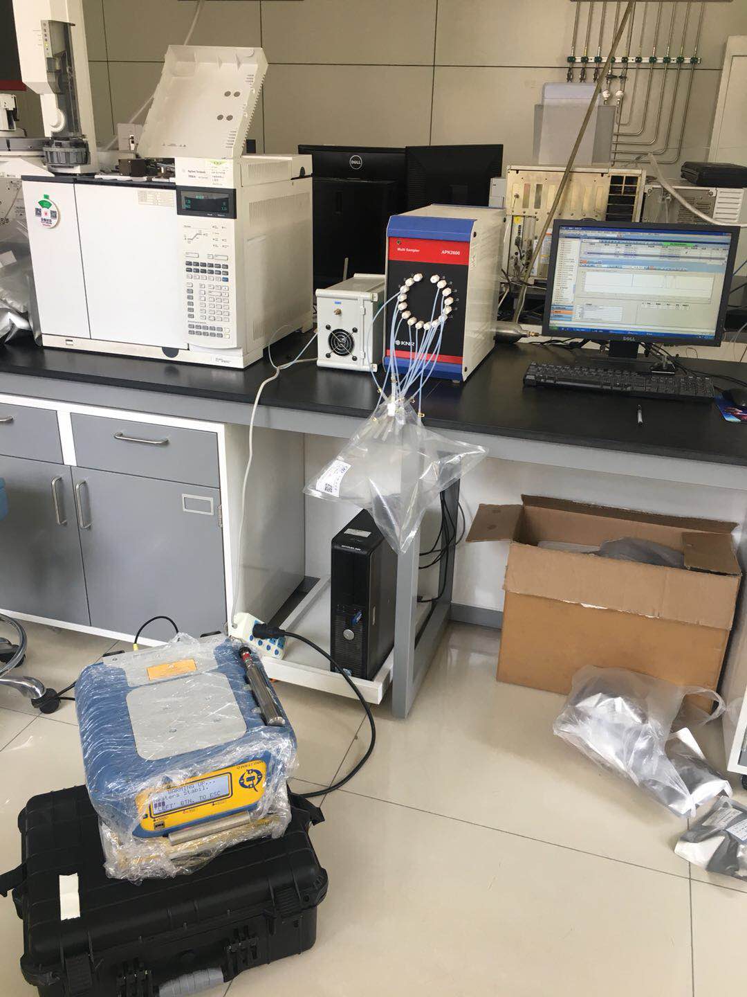 山東省站測試現(xiàn)場(圖中電腦旁邊是我公司代理的APK2600氣袋自動進(jìn)樣器,現(xiàn)服務(wù)于山東省站實(shí)驗(yàn)室)