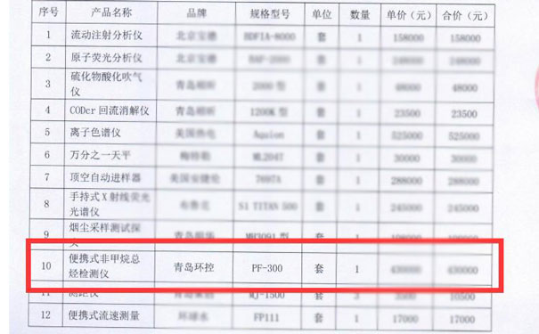 我司中標(biāo)便攜式非甲烷總烴檢測(cè)儀設(shè)備1套